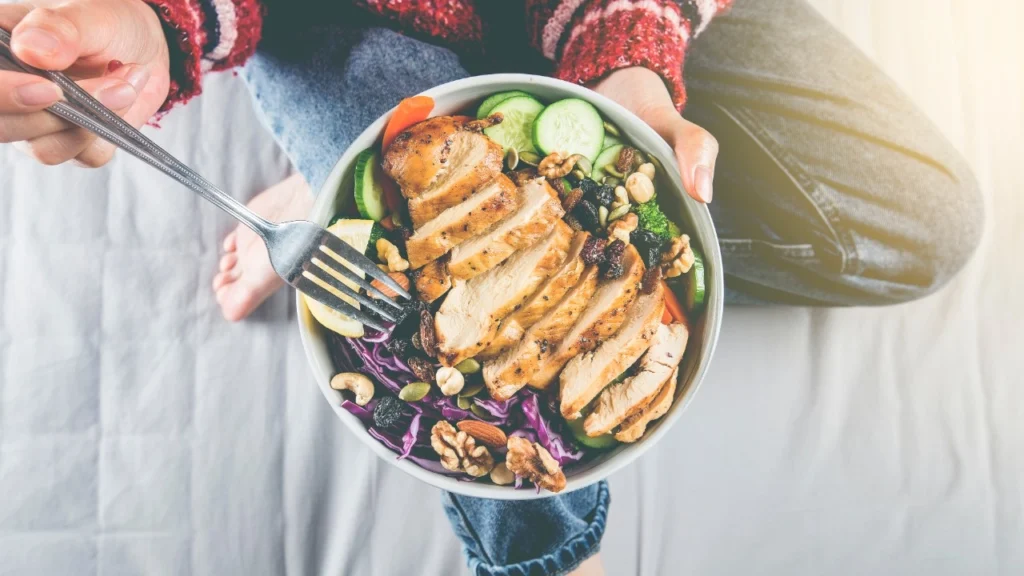 - เพิ่มโปรตีนคุณภาพสูง เช่น อกไก่ ไข่ขาว ปลา เพื่อช่วยเพิ่มมวลกล้ามเนื้อและเร่งการเผาผลาญ