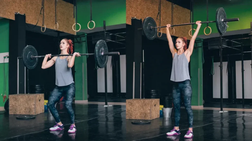 - Overhead Press : นับว่าเป็นท่าการฝึกที่ได้รับการ Load น้ำหนักมากที่สุด โดยการนำอุปกรณ์อย่างดัมเบลและบาร์เบลมาใช้เพื่อเพิ่มความเข้มข้นในการออกกำลังกาย ซึ่งการปฏิบัตินั้นแบ่งออกเป็น 2 รูปแบบทั้งท่านั่ง และยืน (เลือกตามควาเหมาะสมของร่างกายตัวเอง) โดยการยกดัมเบลหรือบาร์เบลขึ้นเหนือหัวและยืดแขนให้สุด จะทำให้คุณได้ใช้กล้ามเนื้อ หัวไหล่ อก หลังแขน ปีก ก้น ท้อง สะบัก ไปจนถึง ขา น่อง และ เท้าเลยทีเดียว ที่สำคัญคือควรเลือกน้ำหนักและปฏิบัติให้เหมาะสมต่อร่างกายตัวเอง
