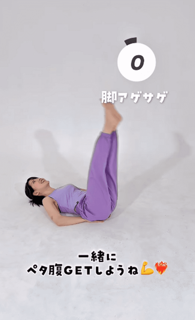 - นอนราบ ชันเข่าให้ฝ่าเท้าวางกับพื้น จากนั้นเอื้อมมือแตะข้อเท้าซ้ายและขวาสลับกัน โดยเกร็งหน้าท้องตลอดเวลา ทำต่อเนื่อง 10 วินาที