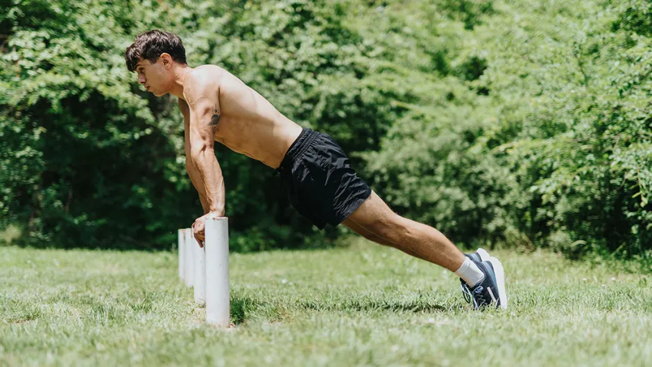 เมื่อร่างกายเริ่มแข็งแรงแล้ว ลองขยับไปสู่ท่าที่ท้าทายขึ้นอย่าง “Decline Push-up” ซึ่งจะช่วยเน้นอกส่วนบน (Upper Chest) และเพิ่มแรงต้านได้มากกว่าทั่วไป